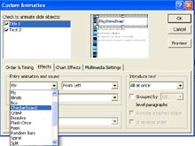 The key to using animation successfully is to pick one or two effects and stick with them throughout the presentation; using too many can be