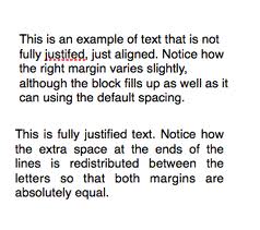 Text can also be left aligned. This is where the left hand margin is perfectly straight but the text at the right hand margin is justifiedjagged. The text on this web page is left justified.